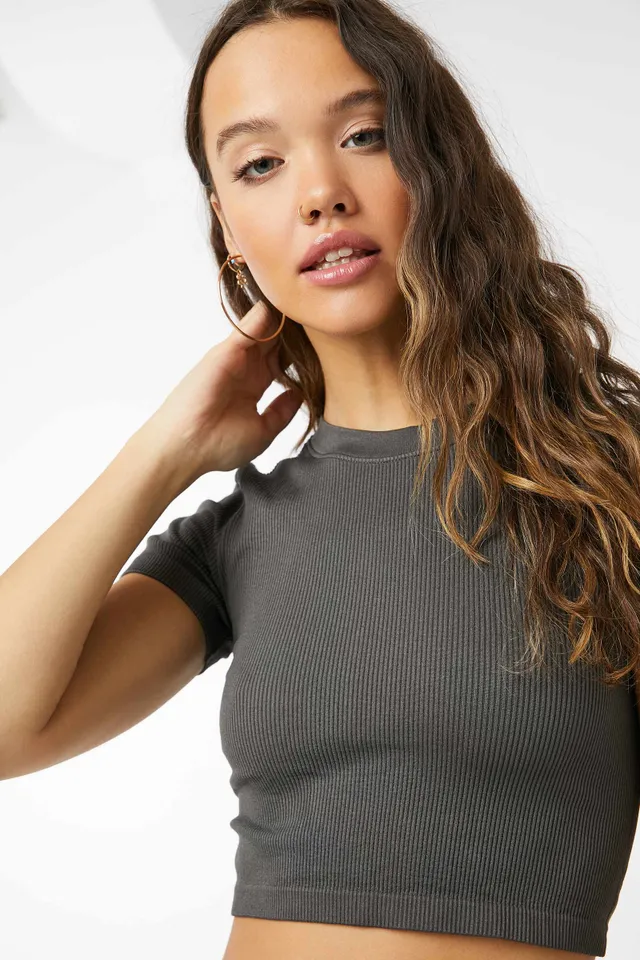 Ultra-cropped top in seamless ribbed knit. Crew neck Short sleeves 92% nylon, 8% spandex Model is wearing Size S Wear it with the matching bottom: 3A-AP31215-12 | Ardene Seamless Ultra-Croppe Tee in Black | Size Small | Nylon/Spandex