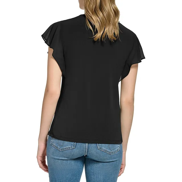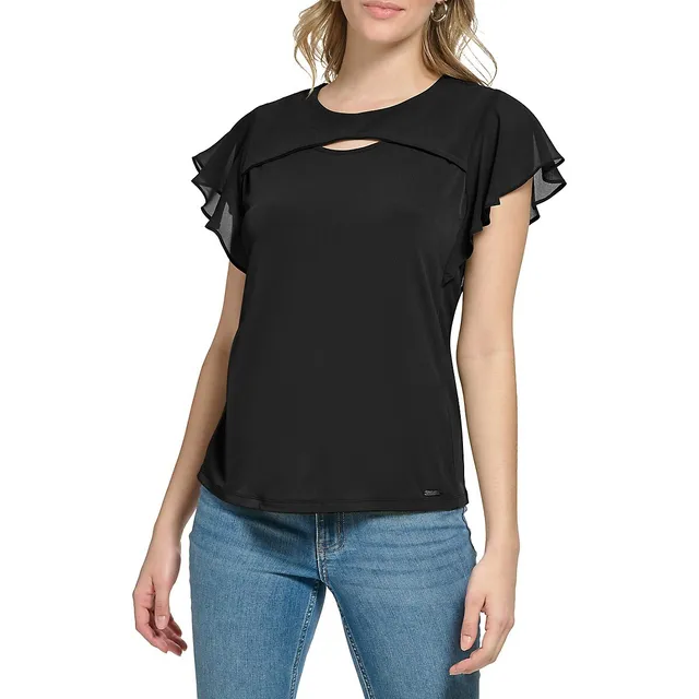 Calvin Klein Flutter-Sleeve Cut-Out Top