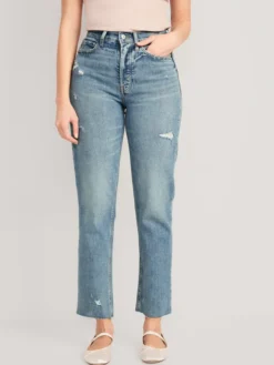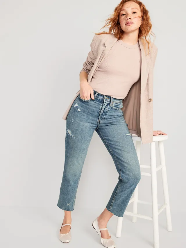 Old Navy Curvy Extra High-Waisted Sky-Hi Straight Button-Fly Cut-Off Jeans For Women