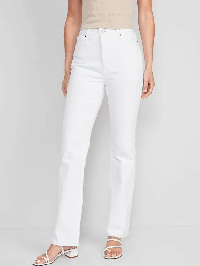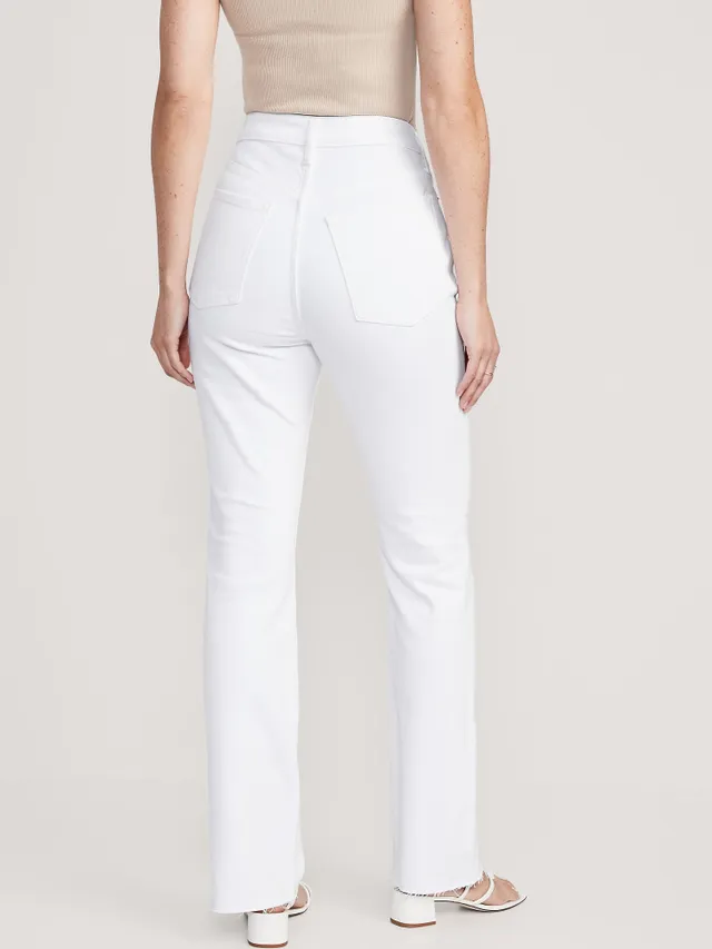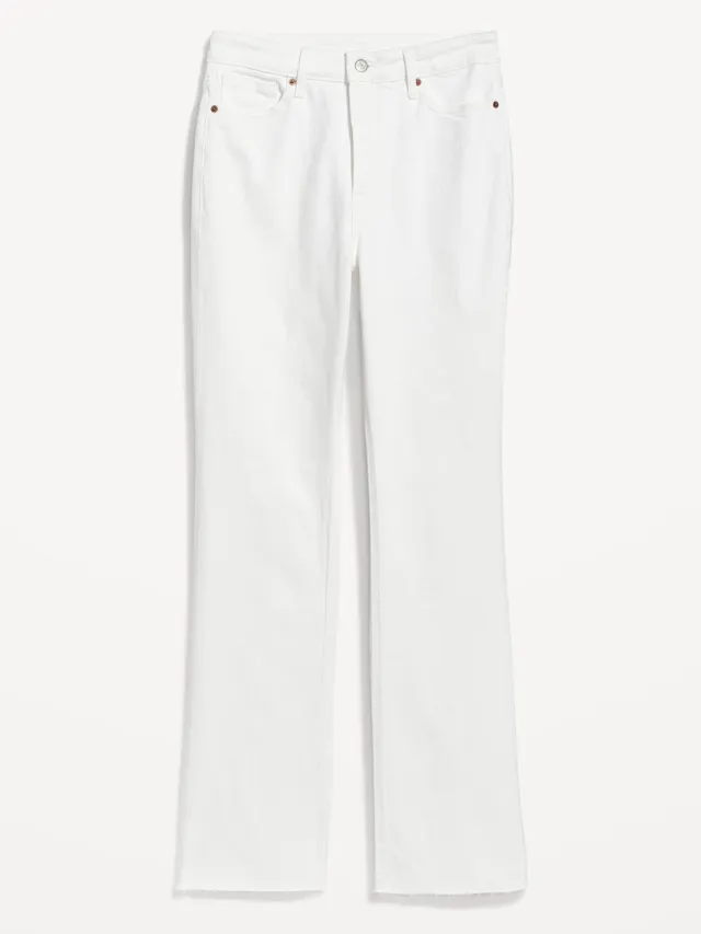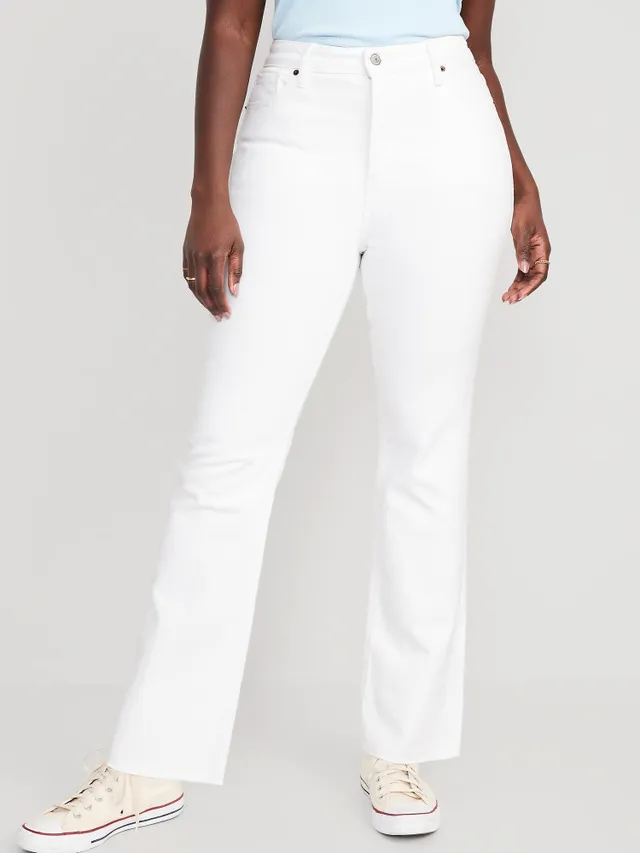 Old Navy Extra High-Waisted Button-Fly White-Wash Cut-Off Kicker Boot-Cut Jeans For Women
