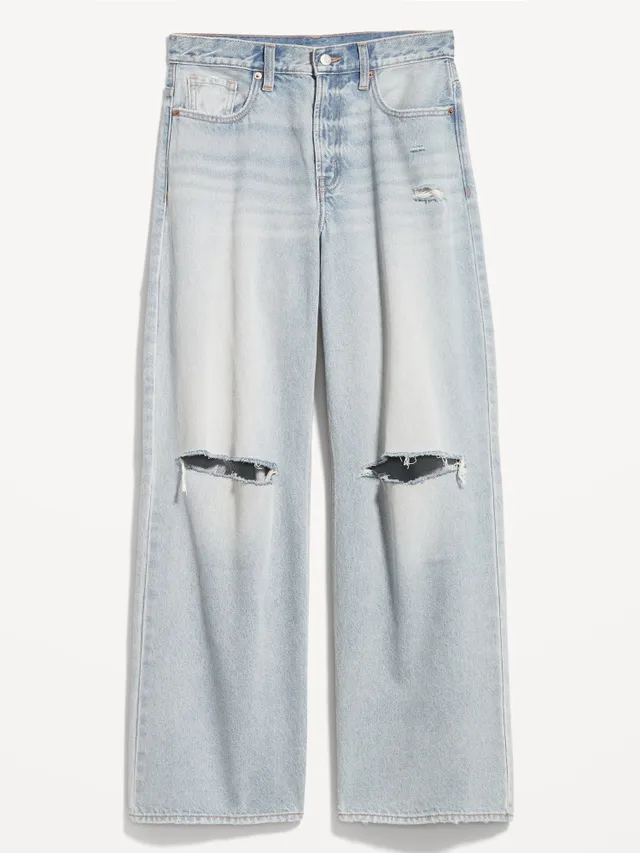 Old Navy Extra High-Waisted Ripped Baggy Wide-Leg Non-Stretch Jeans For Women