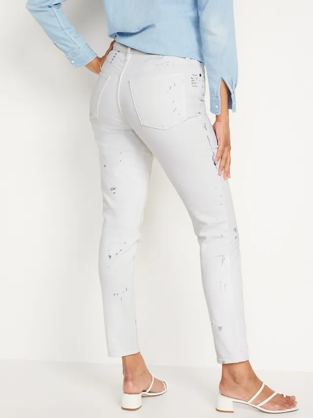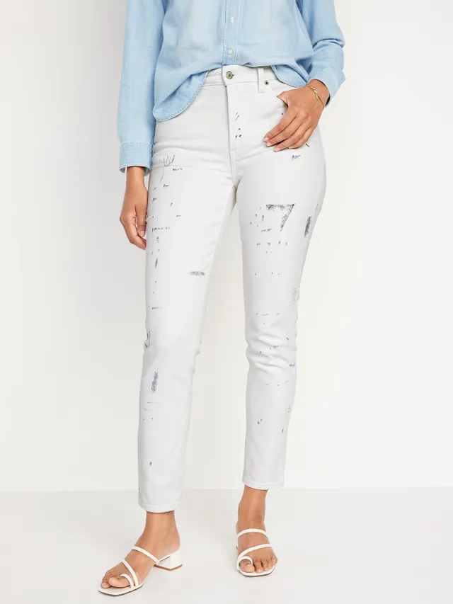 Old Navy High-Waisted OG Straight Paint-Splatter White Ankle Jeans For Women