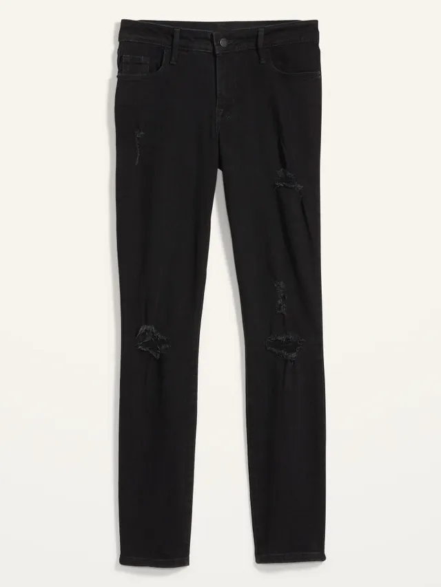 Old Navy Mid-Rise Pop Icon Black-Wash Ripped Skinny Jeans For Women